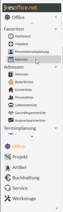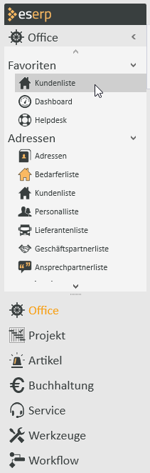 Ausgehend von der Menü-Übersicht der einzelnen Programmmodule gelangt der Benutzer durch Auswahl eines Programmmoduls in der Listenansicht der einzelnen Einträge.