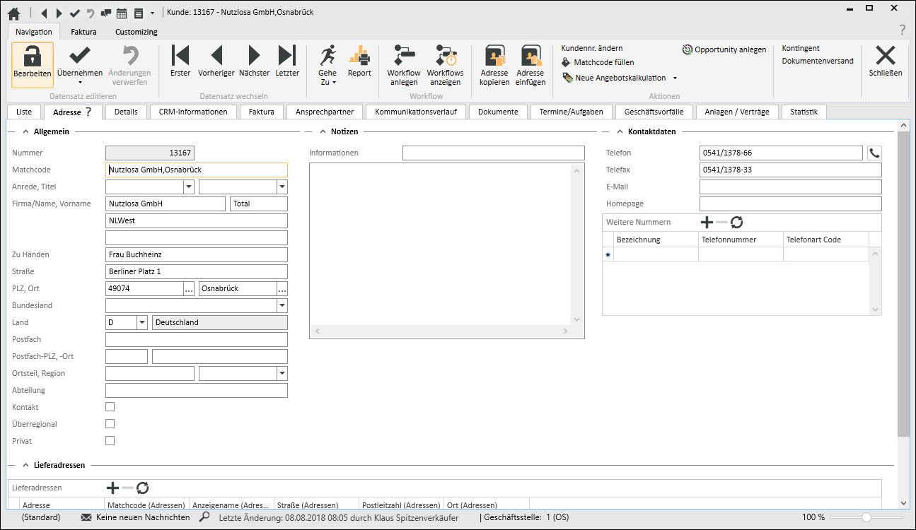 Durch Doppelklick auf ein Listenelement öffnet sich die Detailansicht des jeweiligen Elements.