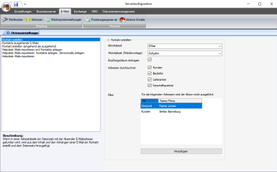 Legen Sie hier fest, welche Aktivitätsart dem erstellten Kontakteintrag für ein- und ausgehende E-Mails zugeordnet werden soll.