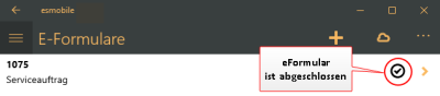 Haben Sie auf dem Register eFormulare für einen Vorgang eine eFormularvorlage ausgewählt, können Sie das Formular auf dem mobilen Gerät ausfüllen und abschließen.
