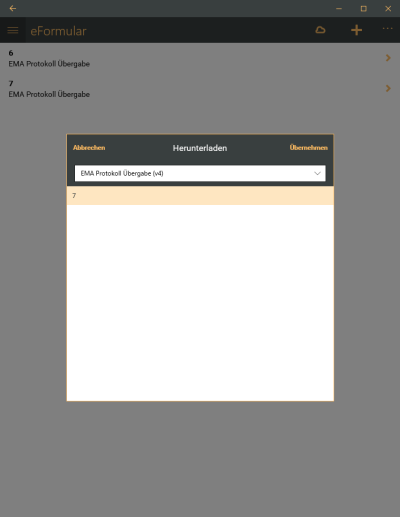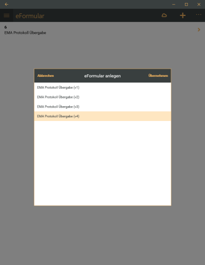 Wählen Sie das eFormular aus und Tippen / Klicken Sie auf die Schaltfläche Übernehmen.