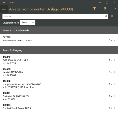 Tippen / Klicken Sie zum Öffnen einer Anlagenkomponente auf den entsprechenden Eintrag in der Komponentenliste.