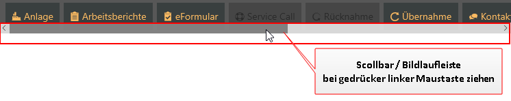 Können aufgrund der Auflösung nicht alle Register angezeigt werden, tippen / klicken Sie unterhalb der Register auf die Bildlaufleiste / Scrollbar. Über die Bildlaufleiste können Sie die weiteren Register rechts erreichen.