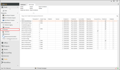When you open the Tools | eForms menu command a list of form templates that have already been created is shown.