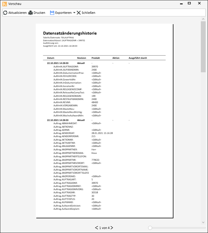 Änderungsverlauf anzeigen kann ein Report aus dem Reporteinstiegspunkt Datensatz Änderungshistorie angezeigt werden.