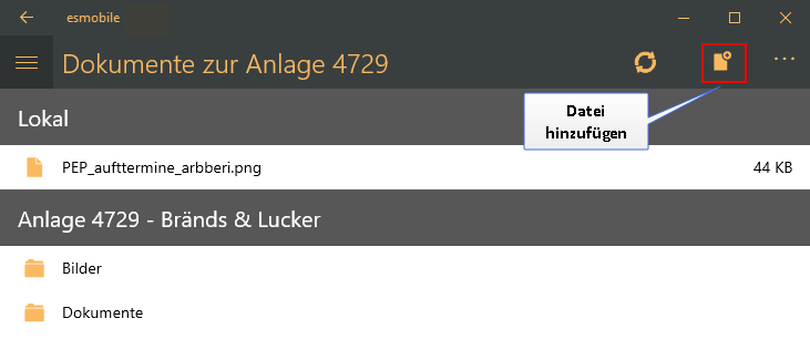 Windows Dateiauswahldialog in der esmobile UWP-App