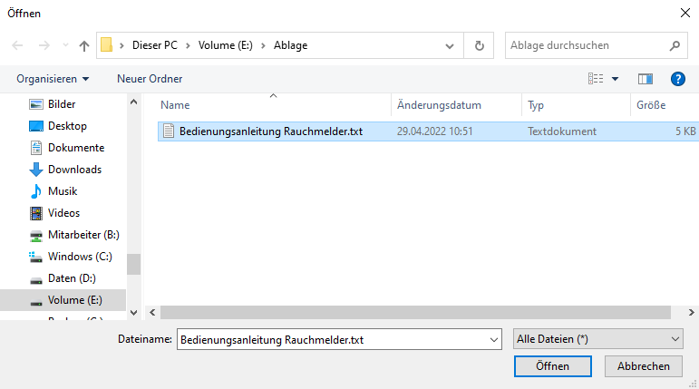 Ein Dialog zur Auswahl der Datei wird geöffnet.