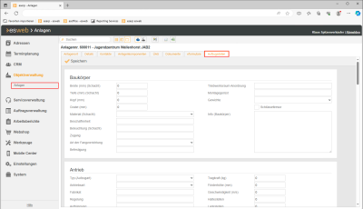 Die Aufzugsdaten können im esweb unter dem Menüpunkt Objektverwaltung | Anlagen auf dem Register Aufzugsdaten durch das Customizing angezeigt werden.