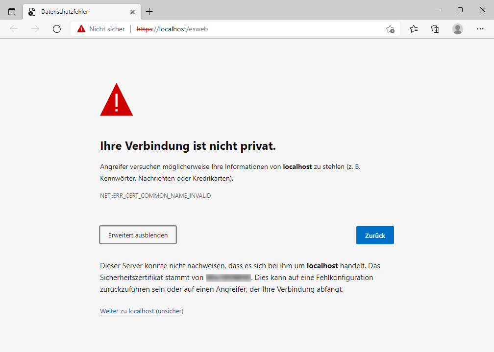 Meldung bei fehlendem oder abweichendem Zertifikat