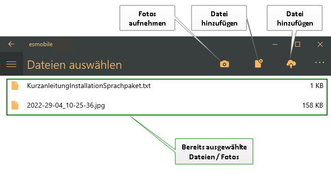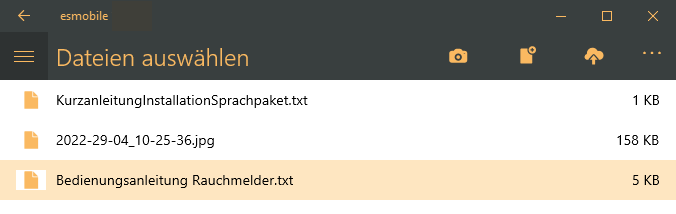 Windows Dateiauswahldialog in der esmobile UWP-App