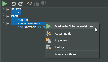 In der SQL-Abfrage stehen Ihnen auch noch Funktionen über das Kontextmenü zur Verfügung, welches Sie über die rechte Maustaste aufrufen können.