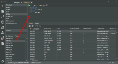 Als Vorgabe wird unter Datenbanken der Alias ESWin ausgewählt und die entsprechenden Datenbank-Tabellen aufgelistet.