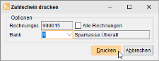 Über die Schaltfläche Zahlschein drucken kann ein interner Report aufgerufen werden, mit dessen Hilfe Einzahlungsscheine gedruckt werden.
