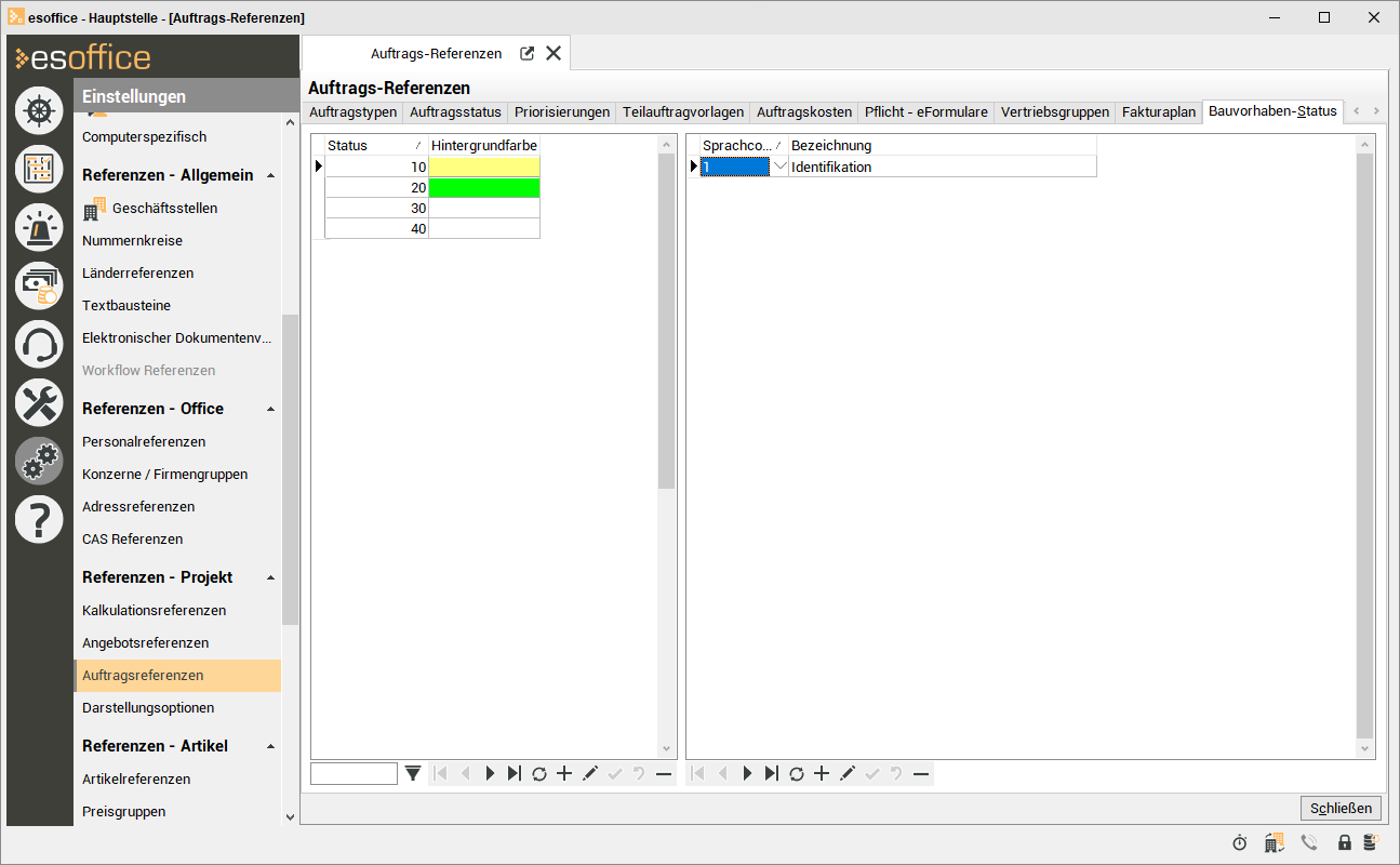 Die Hintergrundfarbe wird in der Listenansicht der Bauvorhaben (Projekt | Bauvorhaben | Liste) angezeigt.