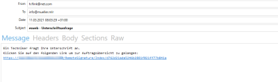 Der Kunde erhält eine E-Mail mit einem Link zur Auftragsübersicht.