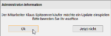 Der Benutzer wird durch einen Popup über das bevorstehende Update informiert. Entspricht der Funktion der Schaltfläche Update einleiten.