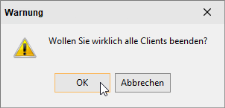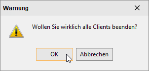 Vor dem Beenden der Clients wird noch eine Sicherheitsabfrage angezeigt.