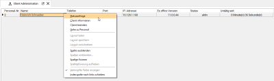 Sollte dennoch ein Mitarbeiter im esoffice angemeldet bleiben, zum Beispiel, weil der jeweilige Benutzer nicht erreicht werden konnte, können Sie die geöffneten esoffice Sitzungen an den Clients auch über die Schaltfläche Clients beenden schließen.