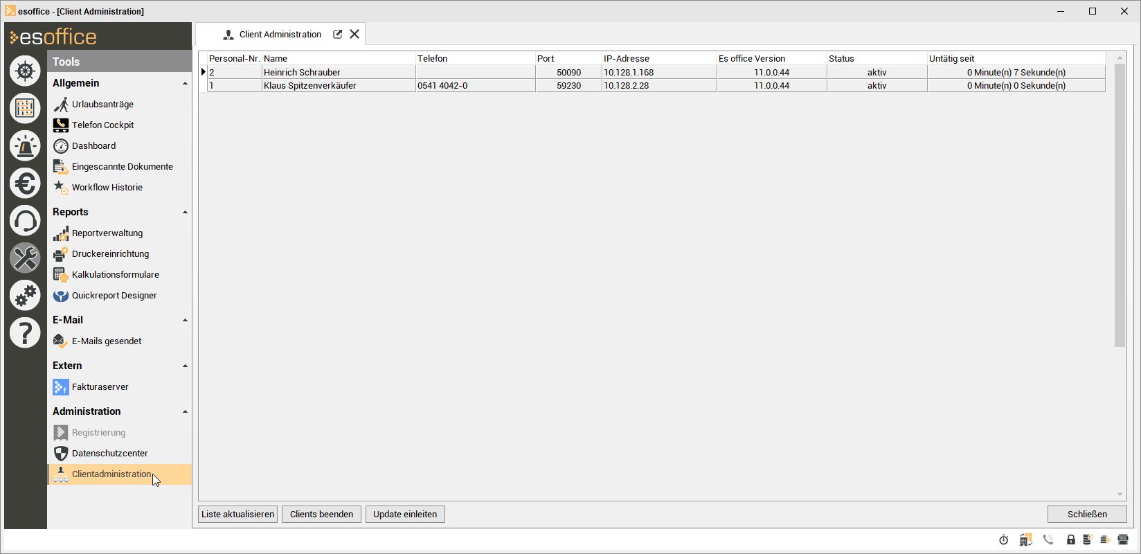 Öffnen Sie das esoffice und wählen Sie unter dem Menüpunkt Tools | Clientadministration aus.