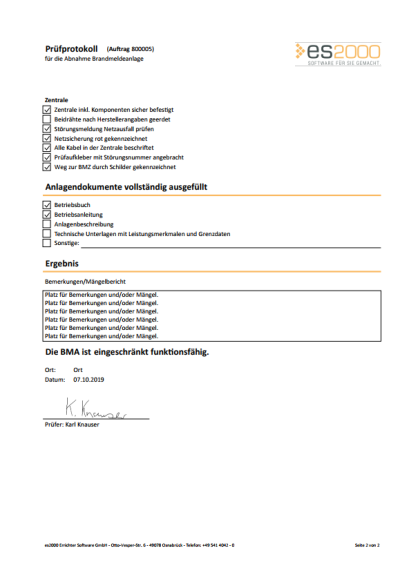 Der Prüfplan Melder ist vorgesehen als Anlage zum BMA Prüfprotokoll Instandhaltung.