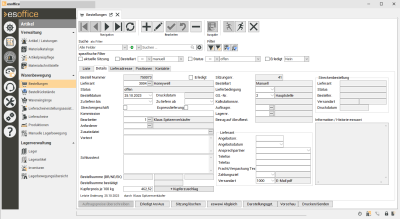 Am Kopf des Registers wird die Bestellnummer angezeigt. Da pro Bestellung eine Nummer aus dem Nummernkreis gezogen wird, kann die Bestellnummer hier nicht verändert werden.