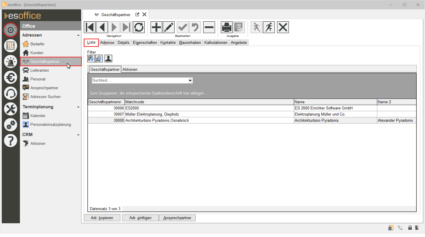 Alternativ können Sie sich unter Office | Ansprechpartner | Liste alle bereits angelegten Ansprechpartner anzeigen lassen.