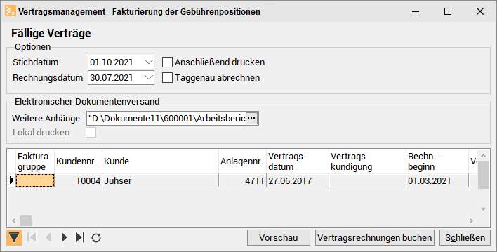 Die zum eingegebenen Stichdatum fälligen Verträge werden angezeigt.