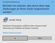 Führen Sie das esweb-Installationsprogramm esweb-xx.x.x.xx als Administrator aus.