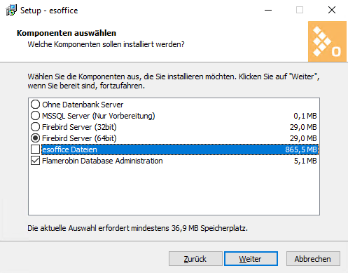 Der Firebird Server kann im Rahmen der esoffice-Installationsroutine mit installiert werden.