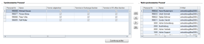 Über die Liste im Bereich Nicht synchronisiertes Personal können einzelne Mitarbeiter aus den Stammdaten für die Exchange-Synchronisation gewählt werden.