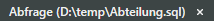 Wird eine Abfrage aus einer Datei (*.SQL) geöffnet oder eine erstellte SQL Abfrage als Datei gespeichert, wird der Pfad und der Dateiname in der Registerbeschriftung mit angezeigt.