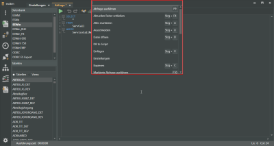 Im Modul SQL-Abfragen stehen folgende Tastaturkombinationen zur Verfügung.