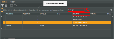 Auf diesem Register werden Abfragewerte angezeigt. Die aktuelle Zeile wird mit einem kleinen Pfeil in der ersten Spalte gekennzeichnet. Zusätzlich befindet sich immer eine leere Zeile am Ende der Anzeigemenge.