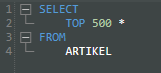 Bei einigen Tabellen mit großen Datenbestand werden zunächst nur 500 Datensätze angezeigt (SELECT TOP 500 *).