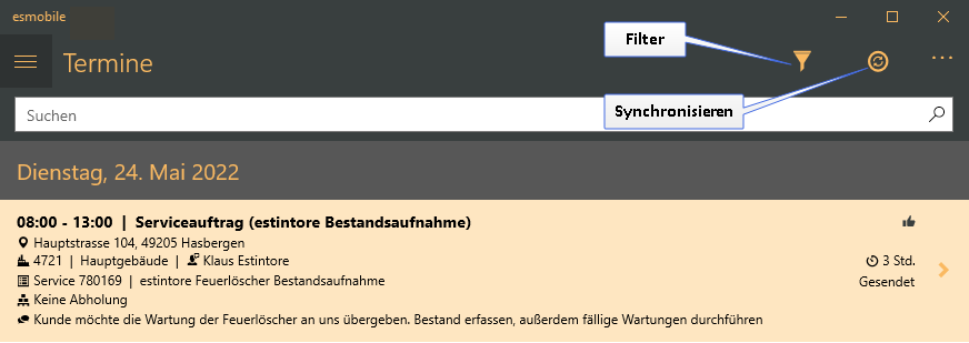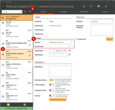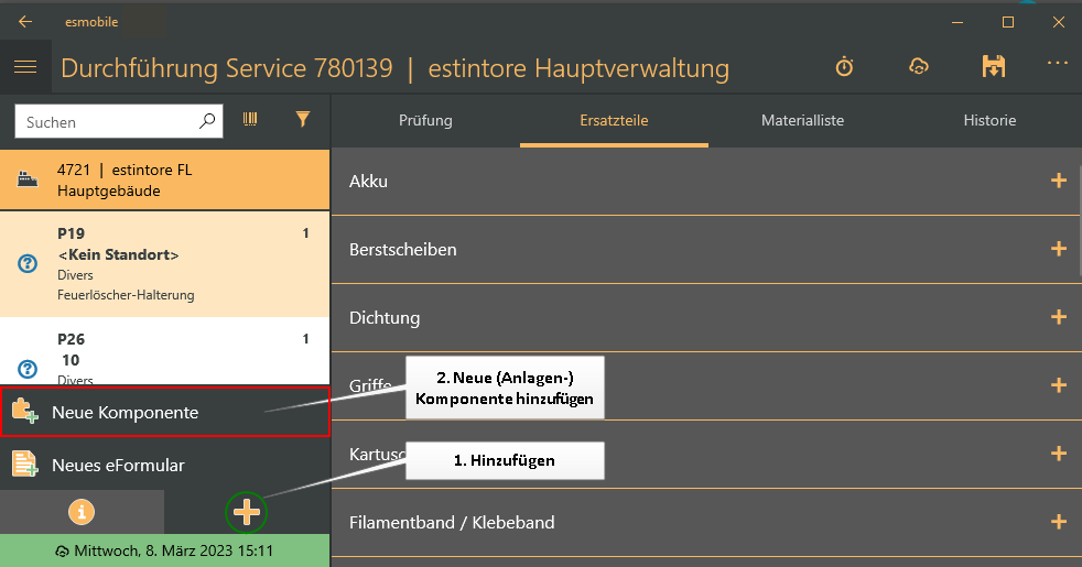 Im folgenden Beispiel wird die Wartung von Feuerlöschern mit Hilfe der esmobile-UWP-App (Betriebssystem Windows) beispielhaft gezeigt.