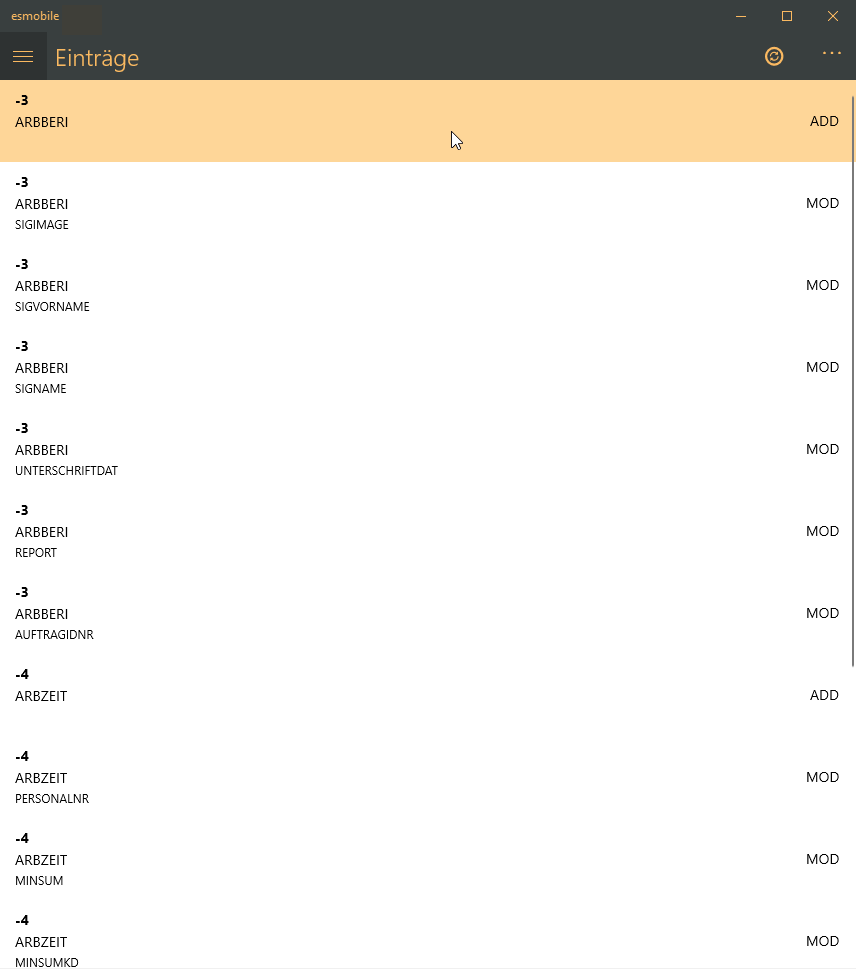 Für jeden Vorgang in der esmobile-App (Anlegen, Löschen und Ändern von Datensätzen) werden Synchronisationseinträge lokal auf dem Gerät angelegt.