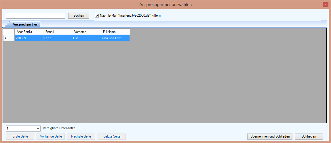 Sollte die E-Mail-Adresse noch nicht im System sein oder Sie möchten eine Zuordnung manuell auswählen, deaktivieren Sie die Option Nach E-Mail ... Filtern.
